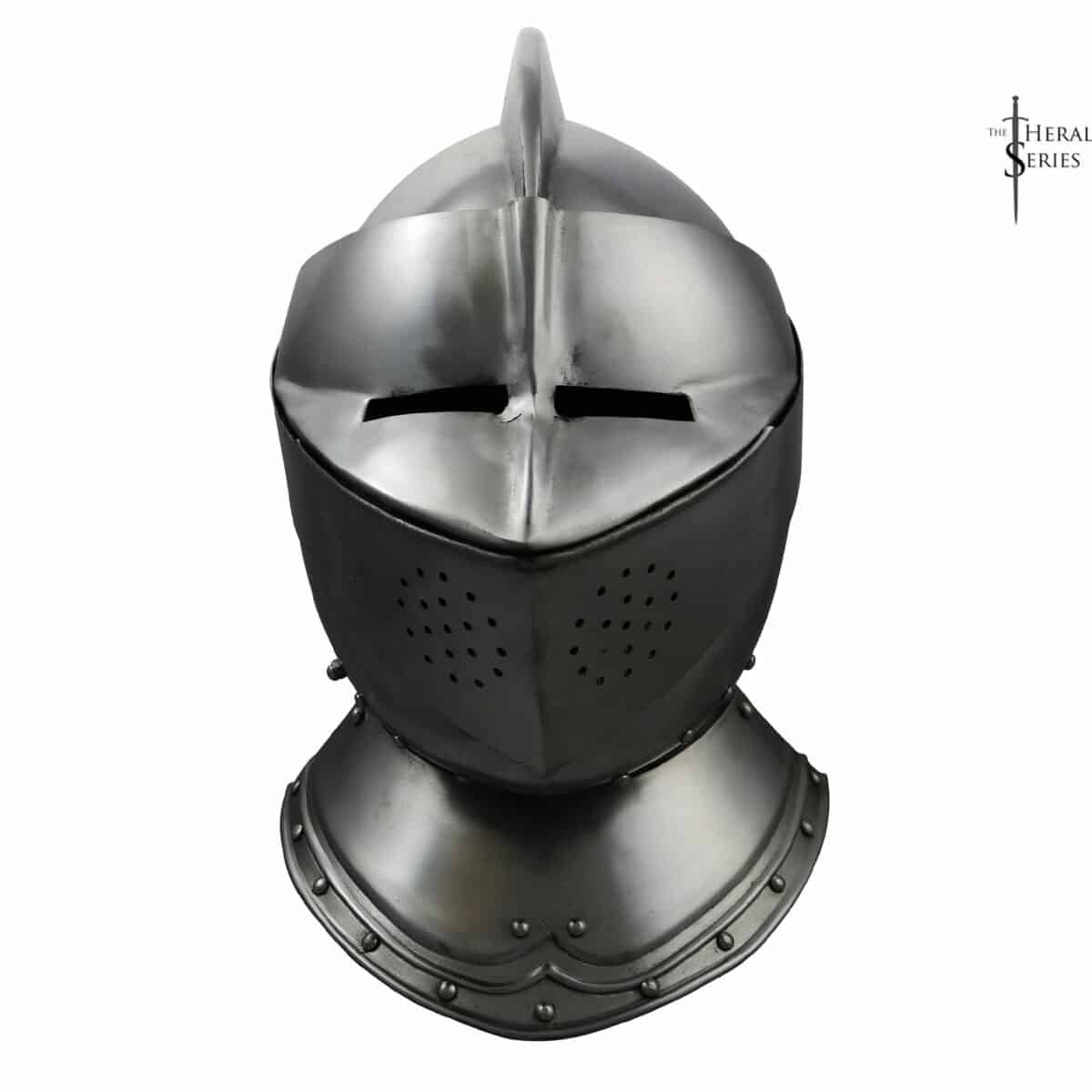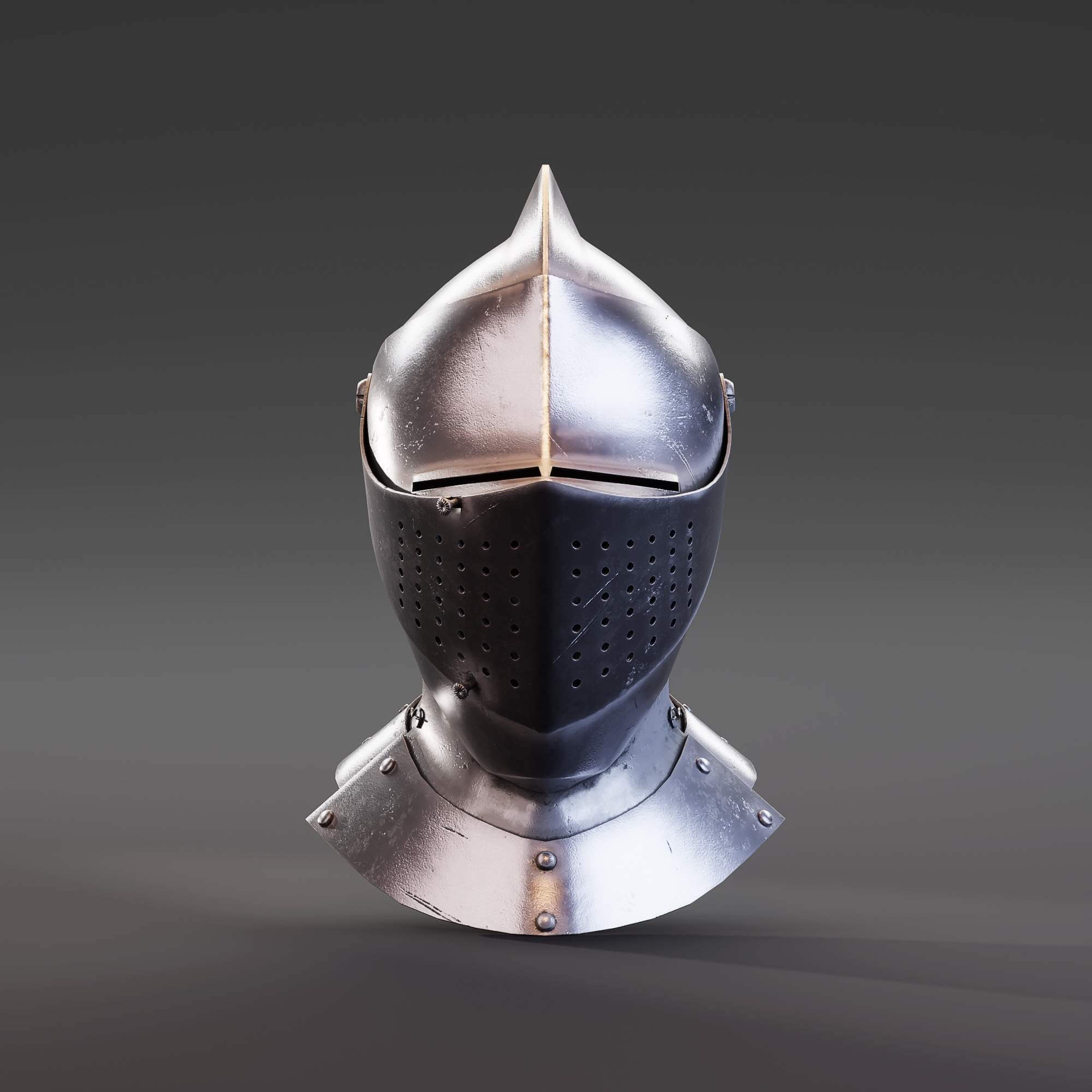 . While the primary goal remained protection, the increasing diversity in the types of helmets medieval craftsmen produced served a dual purpose, both safeguarding the warrior and reflecting his status and identity in the society. It featured a flat top with a rounded or conical shape, covering the entire head and extending down to protect the neck